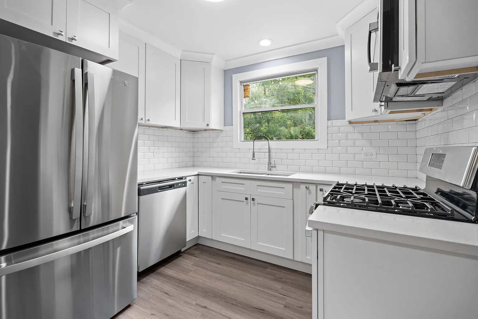 • The Gourmet Kitchen: The heart of the home, this kitchen is a study in clean, contemporary design. It features crisp white shaker cabinetry, quartz countertops, a stylish tile backsplash, and a large breakfast island that provides both seating and workspace. New stainless steel appliances and the adjacent dinette area make this space perfect for entertaining and daily family life.